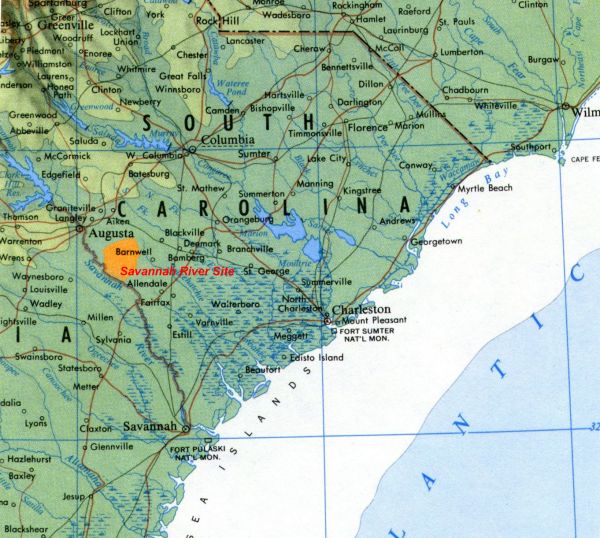 Figure 1- Map of South Carolina showing the Savannah River Site in orange.By James T. Hammond