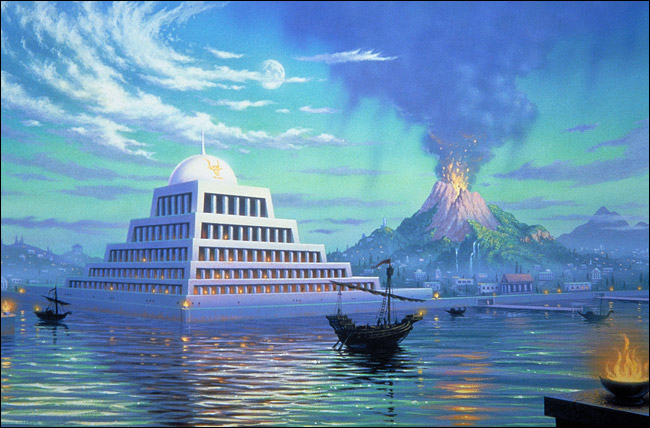 "Behold, the day of destruction is at hand which was foretold ages ago! Atlan shall soon be no more beheld by the Sun in his whole course, for the sea shall swallow you all! Attend ye!"